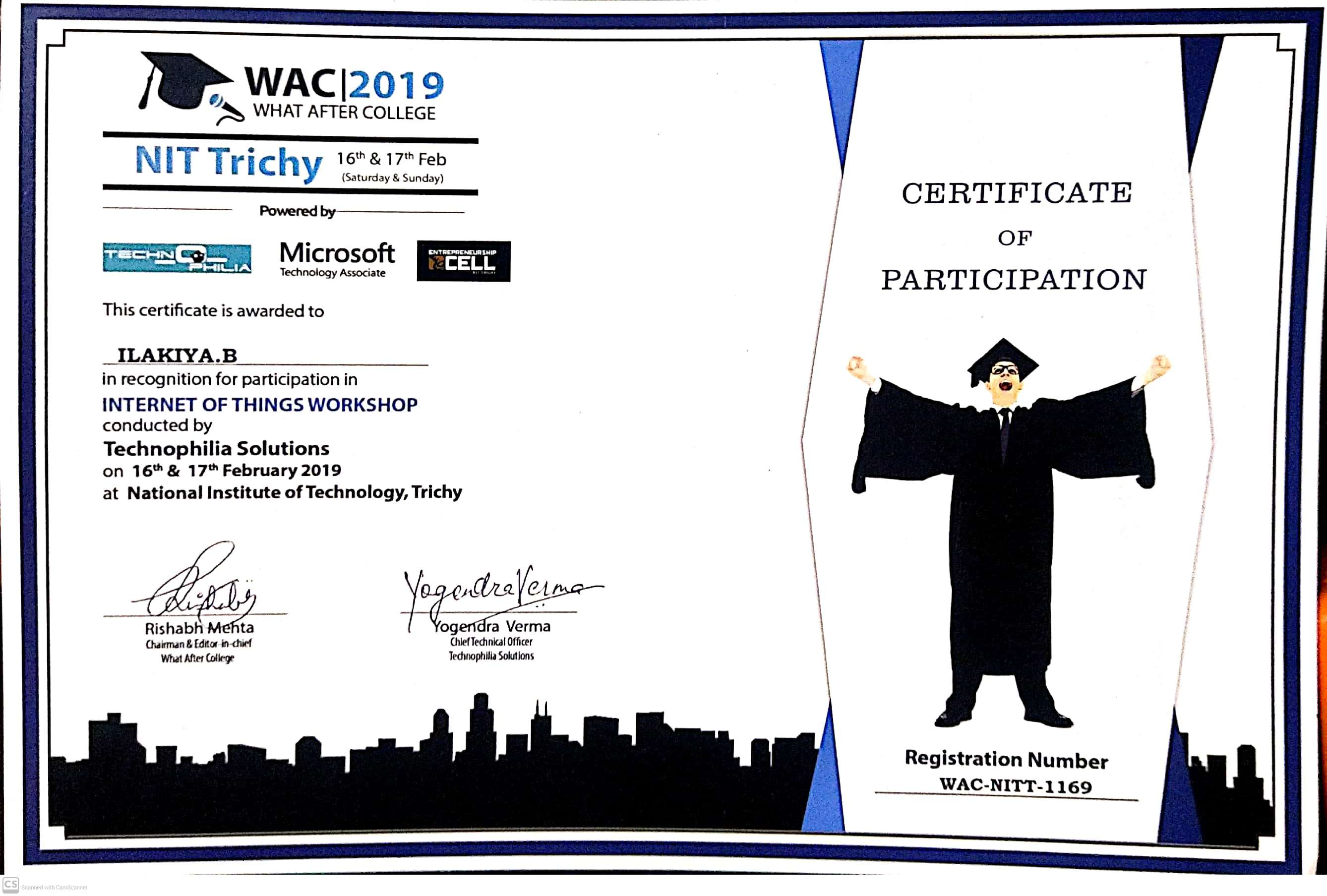 Internet of things Workshop on National Institute of Technology.To view Certificate