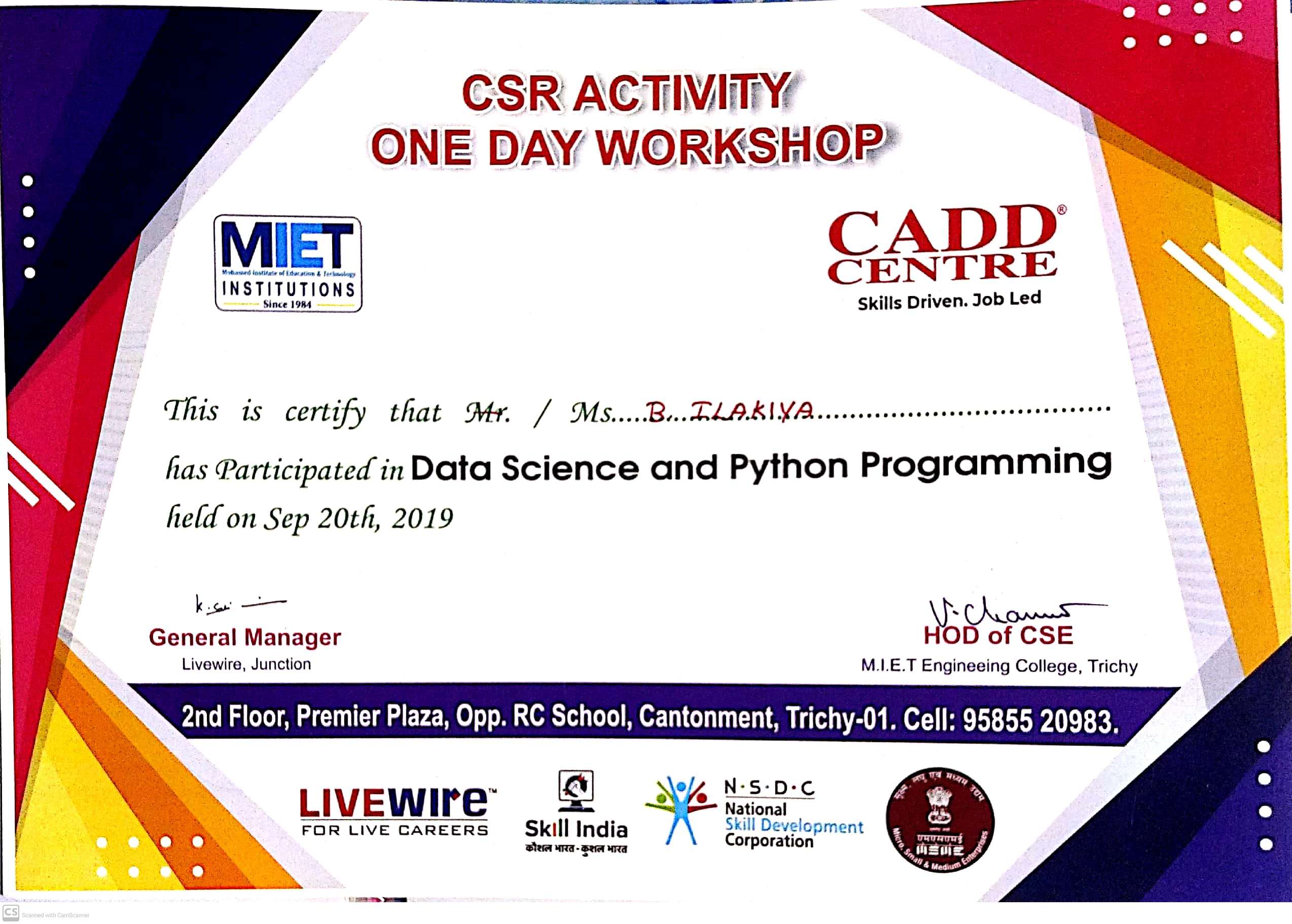 Python Programming and Datastructure in Machine LearningCertificateat Perfect Plan B.